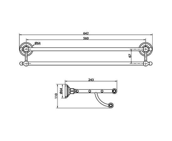Полка для полотенец 56 см, с держателем ELGHANSA