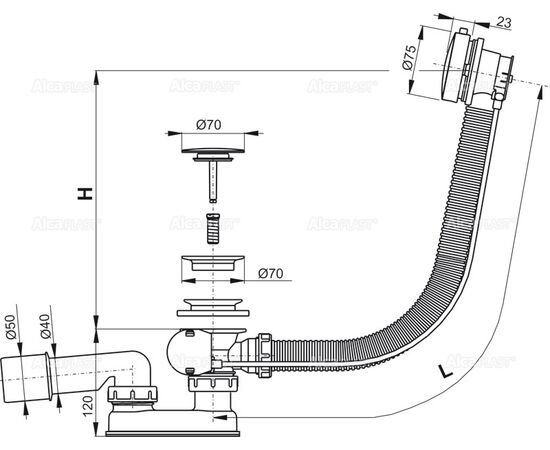 Сифон для ванны автомат комплект металл, арт. A551KM