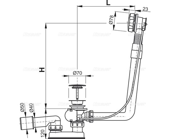 Сифон для ванны автомат комплект металл/металл жёсткий (длина 120 cм), арт. A550KM-120