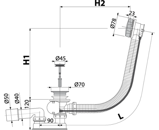 Сифон для ванны автомат комплект металл под бронзу, арт. A55ANTIC