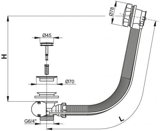 Сифон для ванны автомат металл/металл (длина 80 cм), арт. A56K-80