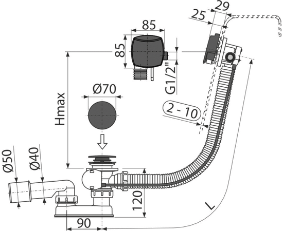 Минимальное количество для товара "Сифон для ванны автомат с напуском воды через перелив, черный мат., арт.A564BLACK" 1.