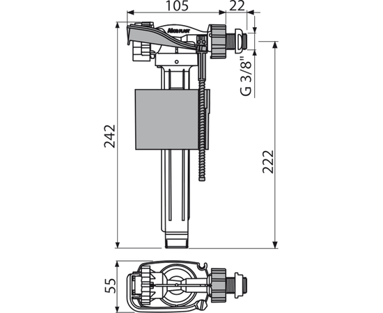 Впускной механизм с боковой подводкой и металлической резьбой для пластиковых бачков, арт. A160P-3/8"