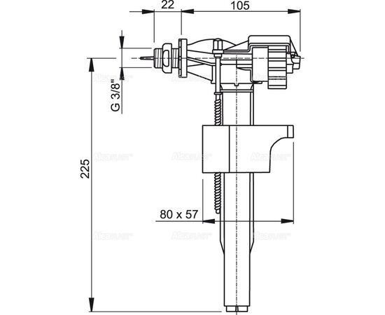 Впускной механизм с боковой подводкой и металлической резьбой (для пластиковых бачков), арт.A16P-3/8"