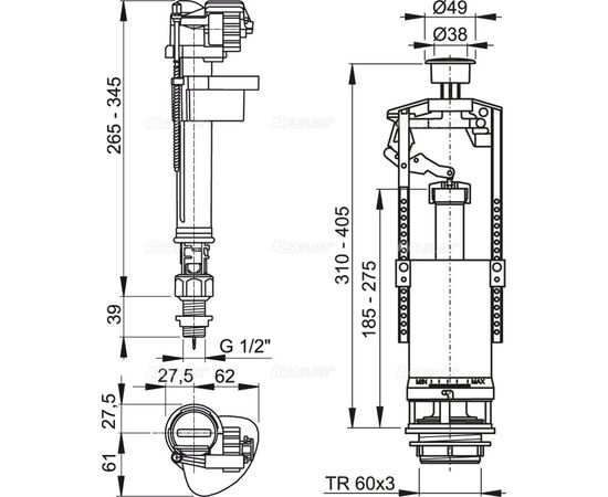 Выпускной комплект со стоп кнопкой, впускной механизм А18 1/2 метал. резьба, арт. SA2000SK 1/2" C