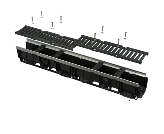 Дренажный канал 100 мм с рамой из оцинкованной стали и чугунной решеткой, арт. AVZ103-R202