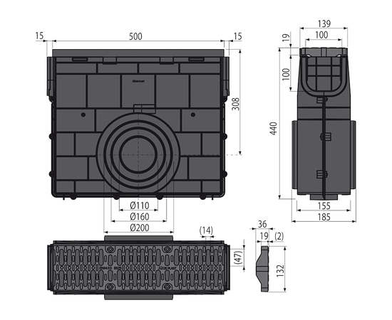 Пескоуловитель для дренажного канала AVZ104 с пластиковой рамой и решеткой из композитного материала, арт. AVZ104R-R402