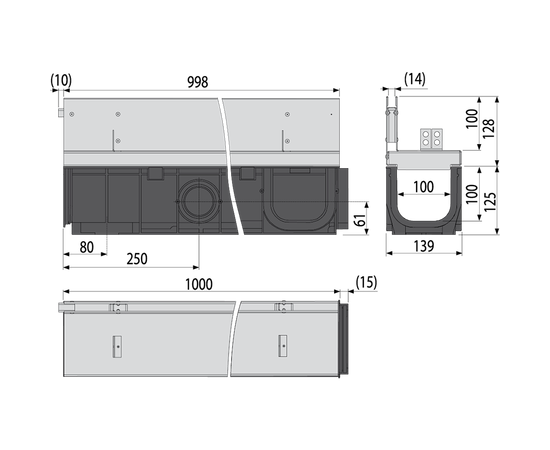 Пескоуловитель для дренажного каналаAVZ101-R121 с щелевой асимметричной надставкой из оцинкованной с, арт.AVZ101-R121