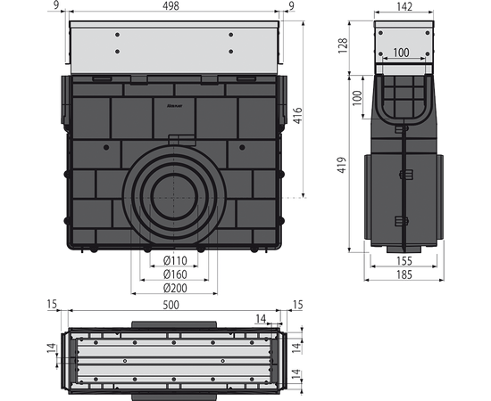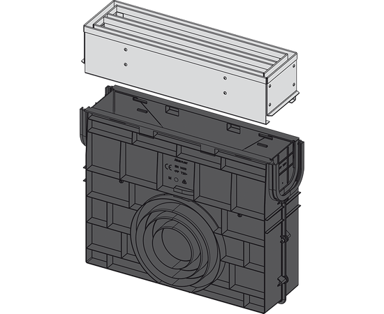 Пескоуловитель для дренажного каналаAVZ101-R123 с щелевой симметричной надставкой из оцинкованной ст, арт.AVZ101R-R123R