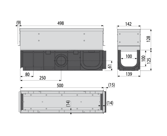 Щелевой дренажный канал асимметричная ревизионная часть 100 мм из оцинкованной стали, арт.AVZ101S-R121R