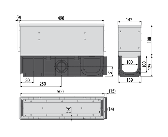 Щелевой дренажный канал асимметричная ревизионная часть 160 мм из нержавеющей стали, арт.AVZ101S-R322R
