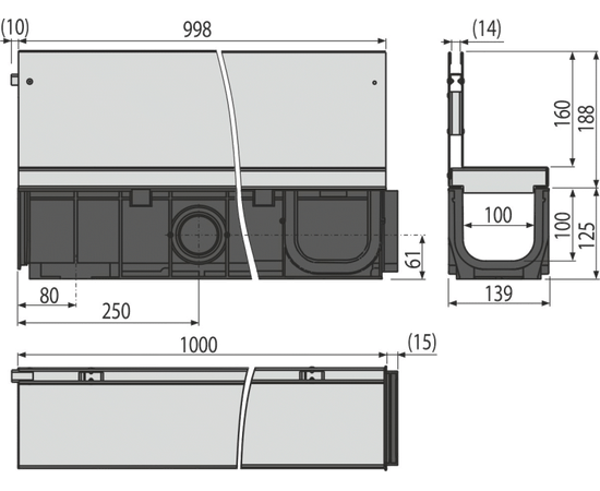 Щелевой дренажный канал асимметричный 160 мм из оцинкованной стали, арт. AVZ101-R122