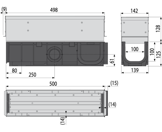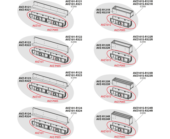 Щелевой дренажный канал симметричная ревизионная часть 100 мм нержавеющей стали, арт. AVZ101S-R323R