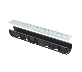 Дренажный канал 100 мм с интегрированной пластиковой рамой и оцинкованной решеткой, арт. AVZ102-R103