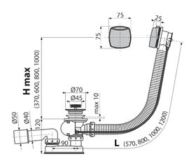 Сифон для ванны автомат комплект металл, арт. A550KM