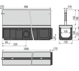 Щелевой дренажный канал симметричный 160 мм из нержавеющей стали, арт. AVZ101-R324