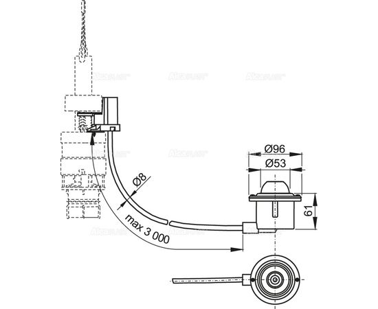 Кнопка пневматического смыва на расстоянии – ножное управление, металл, монтаж: в пол, арт. MPO12