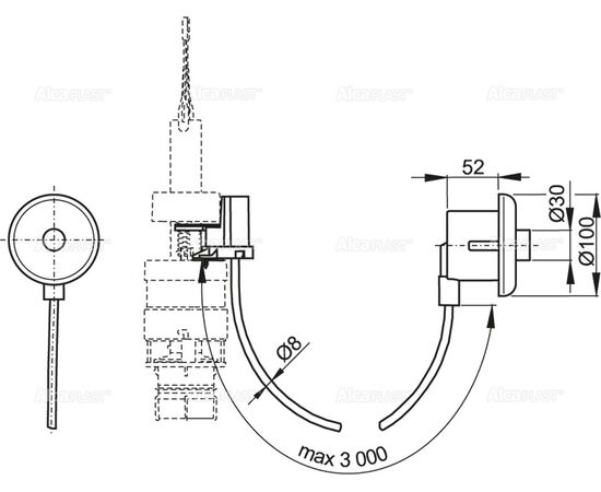 Кнопка пневматического смыва на расстоянии – ручное управление, хром – глянцевая, монтаж: в стену, арт. MPO11