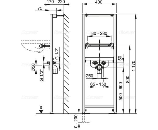 Минимальное количество для товара "Рама для умывальника (высота монтажа 1,2 м), арт. A104/1200" 1.