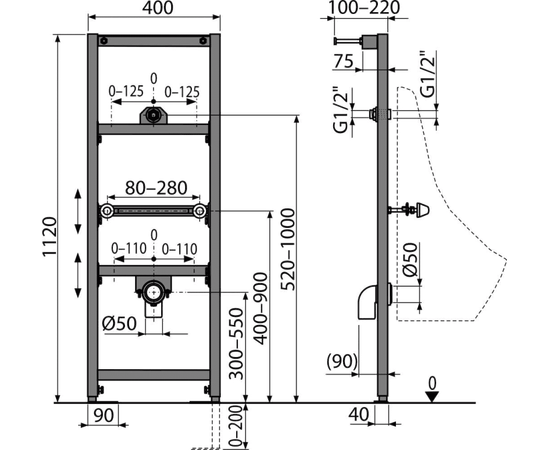 Минимальное количество для товара "Рама для писсуара (высота монтажа 1,2 м), арт. A107/1120" 1.