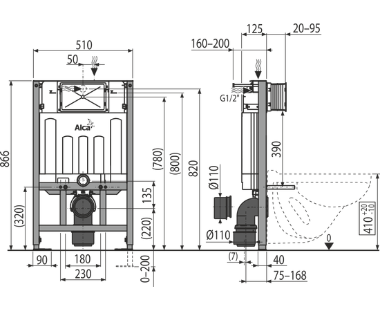 Скрытая система инсталляции для сухой установки (высота монтажа 0,85 м), арт.AM101/850