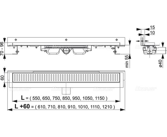 Flexible Low - Водоотводящий желоб для перфорированной решетки с регулируемым краем к стене, арт.APZ104-1050