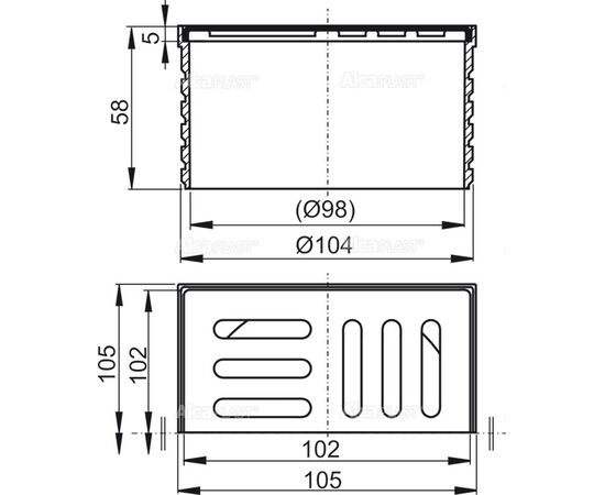Горловина сливного трапа, решетка 105 × 105 нержавеющая сталь для APV26, APV26C, арт. APV0900