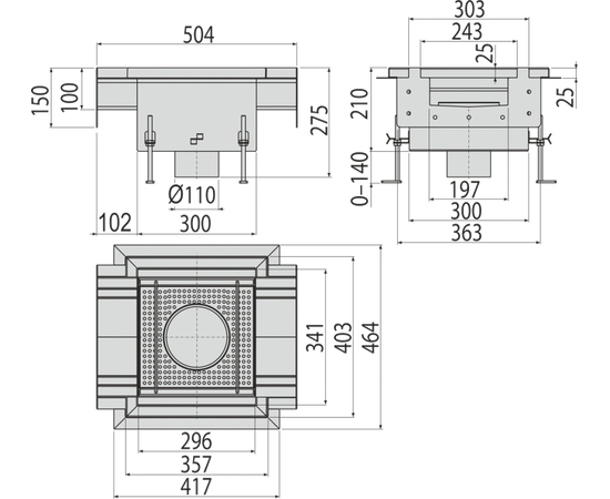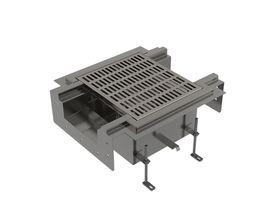 Промышленный коробчатый сливной трап из нержавеющей стали AISI304 c фланцевыми соединениями, проходн, арт.APR1-1152