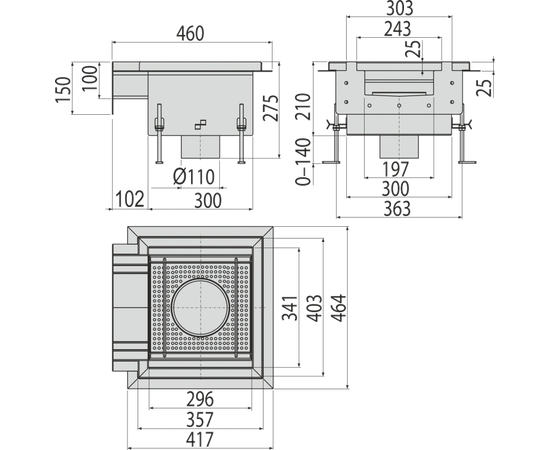 Промышленный коробчатый сливной трап из нержавеющей стали AISI304 с фланцевым соединением, тупиковый, арт.APR1-1151
