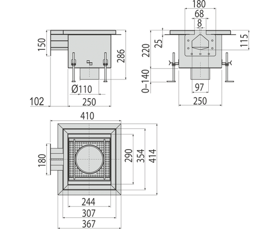 Промышленный сливной трап с щелевым выпуском из нержавеющей стали AISI304 и фланцевым соединением, т, арт.APR2-1151