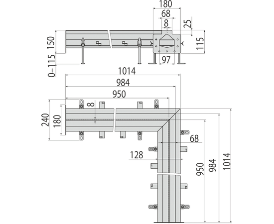 Промышленный угловой желоб щелевой из нержавеющей стали AISI304, арт. APR2-1102