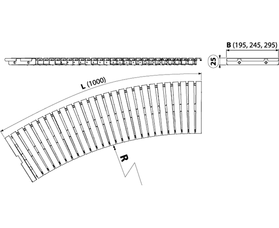Решетка для бассейна без антискользящей поверхности, минимальный внутренний радиус мм R1550, арт.AP1-295-R