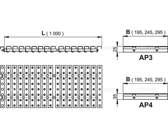 Решетка с переливом с противоскользящей поверхностью (Высота 35мм, Ширина, 295мм, длина 1000мм), арт, арт.AP4-295