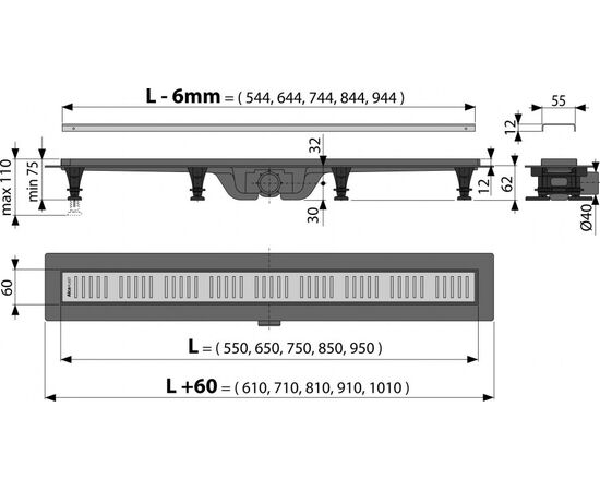 Simple - Водоотводящий желоб с порогами для перфорированной решетки, арт. APZ10-750M (AG100401750)