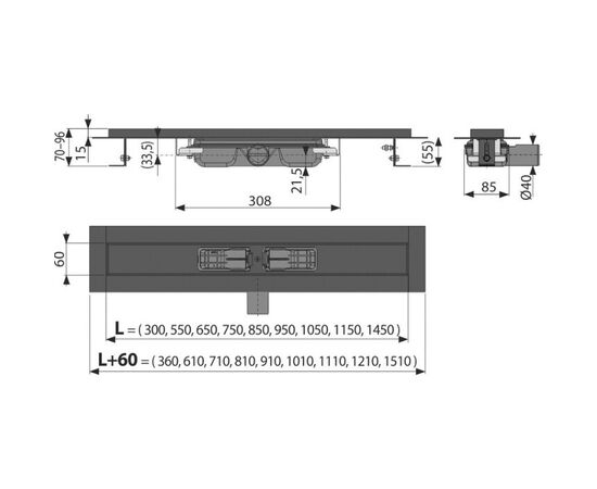 Simple - Водоотводящий желоб с порогами для перфорированной решетки, арт.APZ10BLACK-650M (AG101101650)