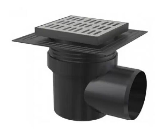Сливной трап 150 × 150/110 подводка – боковая, решетка – нержавеющая сталь, воротник – 2-х уровневая изоляция, арт.APV12C