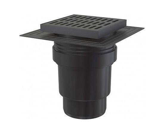 Сливной трап 150 × 150/110, подводка – прямая, решетка – черная, воротник – 2-х уровневая изоляция, арт.APV11C