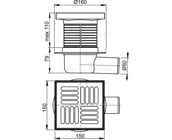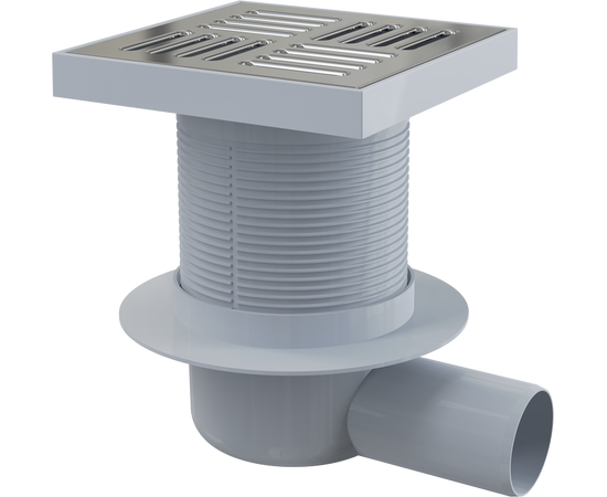 Сливной трап 150 × 150/50, подводка – боковая, решетка – нержавеющая сталь, гидрозатвор – мокрый, арт.APV5411