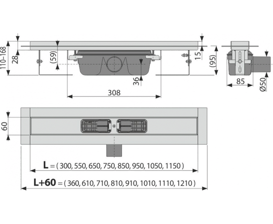 Водоотводящий желоб с порогами для цельной решетки,арт. APZ6-750
