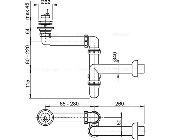 Минимальное количество для товара "Cифон для умывальника экономящий пространство Ø63, арт. A413 (AG210511100)" 1.