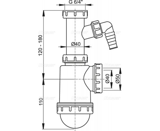 Минимальное количество для товара "Сифон для мойки с накидной гайкой 6/4" и подводкой, арт. A443P-DN50/40" 1.