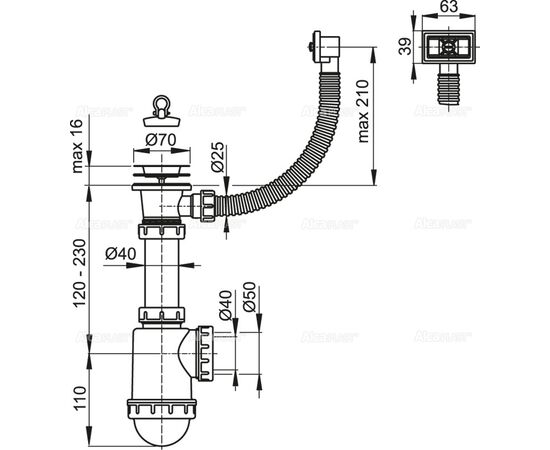Минимальное количество для товара "Сифон для мойки с нержавеющей решеткой Ø70 и гофропереливом, арт. A444-DN50/40" 1.