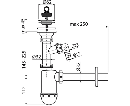 Минимальное количество для товара "Сифон для умывальника Ø32 с подводкой и нержавеющей peшeткой Ø63, арт. A410P" 1.