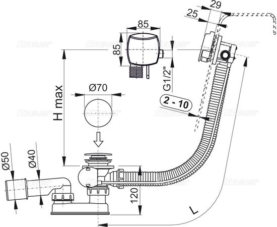 Минимальное количество для товара "Сифон для ванны с напуском воды через перелив, пластик хромированный, арт. A564CRM1" 1.