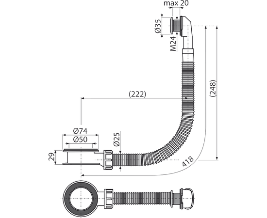 Слив-перелив для умывальника хромированный, арт. A328CR