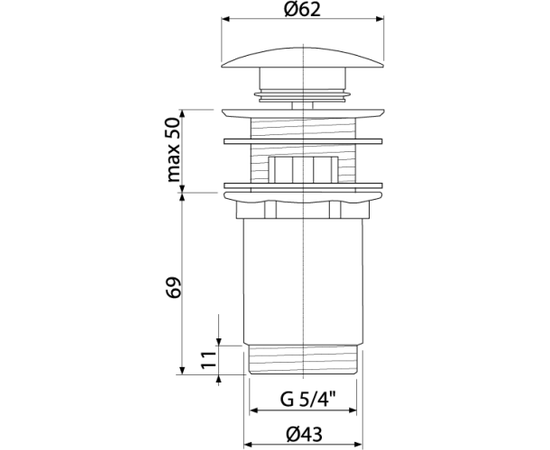 Водослив для умывальника click/clack 5/4", цельнометаллический с большой заглушкой под бронзу, арт.
