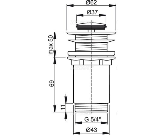 Водослив для умывальника click/clack 5/4", цельнометаллический с малой заглушкой для умывальников бе, арт.A394