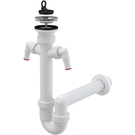 Сифон для сдвоенной мойки с нержавеющими решетками Ø70 и подводкой, арт. A449P-DN50/40