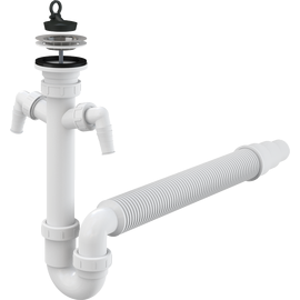 Сифон трубчатый с накидной гайкой 6/4", с двумя подводками и гофрой, арт. A84-DN50/40