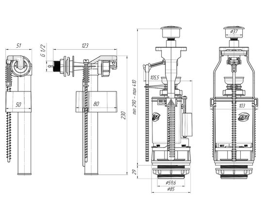 Минимальное количество для товара "Арматура для унитаза Эконом боковая 1/2" двойная кнопка белая АНИ WC-3050 (20 шт)" 1.